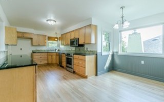 One level three bedroom two bath in a fantastic neighborhood. Spacious living area with many windows and lots of light.